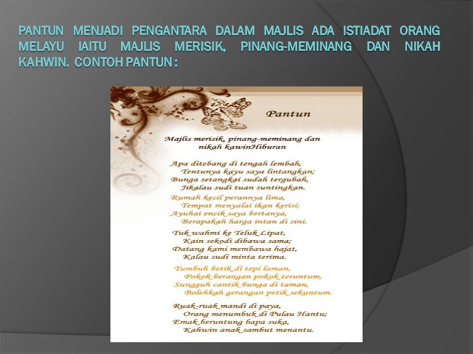 Pengarah Urusan In English. Pantun melayu pertama yang sering digunakan dalam kehidupan sehari-hari adalah pantun saat merisik. Lazimnya ahli keluarga paling dekat seperti bapaibu saudara atau mak bapak sendiri.